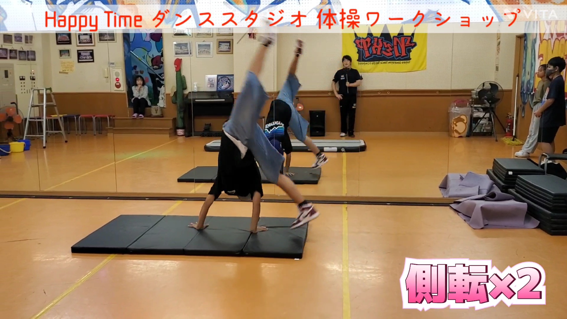 Happy Timeダンススタジオさんにて体操ワークショップを行いました! 1人でするとなると恐怖心からなかなか出来ない子もいますが、毎回出来る事も増えてきていますので、自信を持って色々な技にチャレンジしてほしいです😊 これからも転回やバク転など、色々と一緒に頑張っていきましょう✨